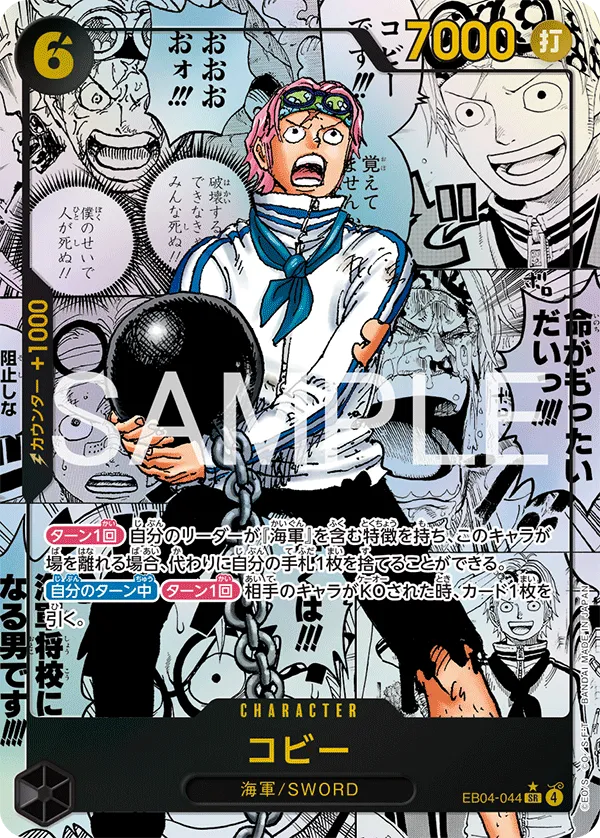 作中での登場シーンは決して多くないものの、コビーは根強い人気を誇るキャラクターであり、海軍キャラクターとしては初のコミパラ化という点でも特別な1枚です。原作ではエッグヘッド編前編における 黒ひげ海賊団 vs 海軍 で重要な役割を果たしています。