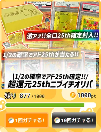 また、アド確定タブのオリパは積極的に挑戦したいところです。このほか、回数制限付きのオリパも狙い目で、無理なく楽しみたい方に向いています。