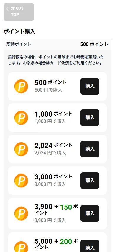 LINE友だち登録時に無料500ポイントが付与され、さらにログインボーナスも複数回用意されているため、いきなり課金せずに雰囲気を試せる点は安心材料と言えるでしょう。試した結果、不安を感じる場合はオリパ自体を控える選択も大切です。