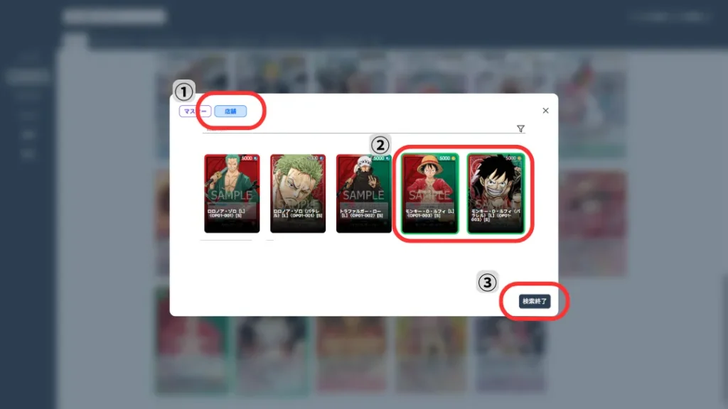 次に、上部のタブからトレカタイトルを選択してください。【画像①】