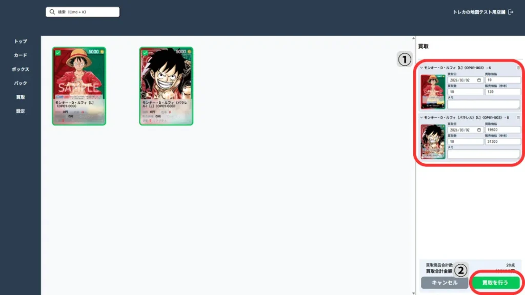 2. 買取内容の入力・買取確定